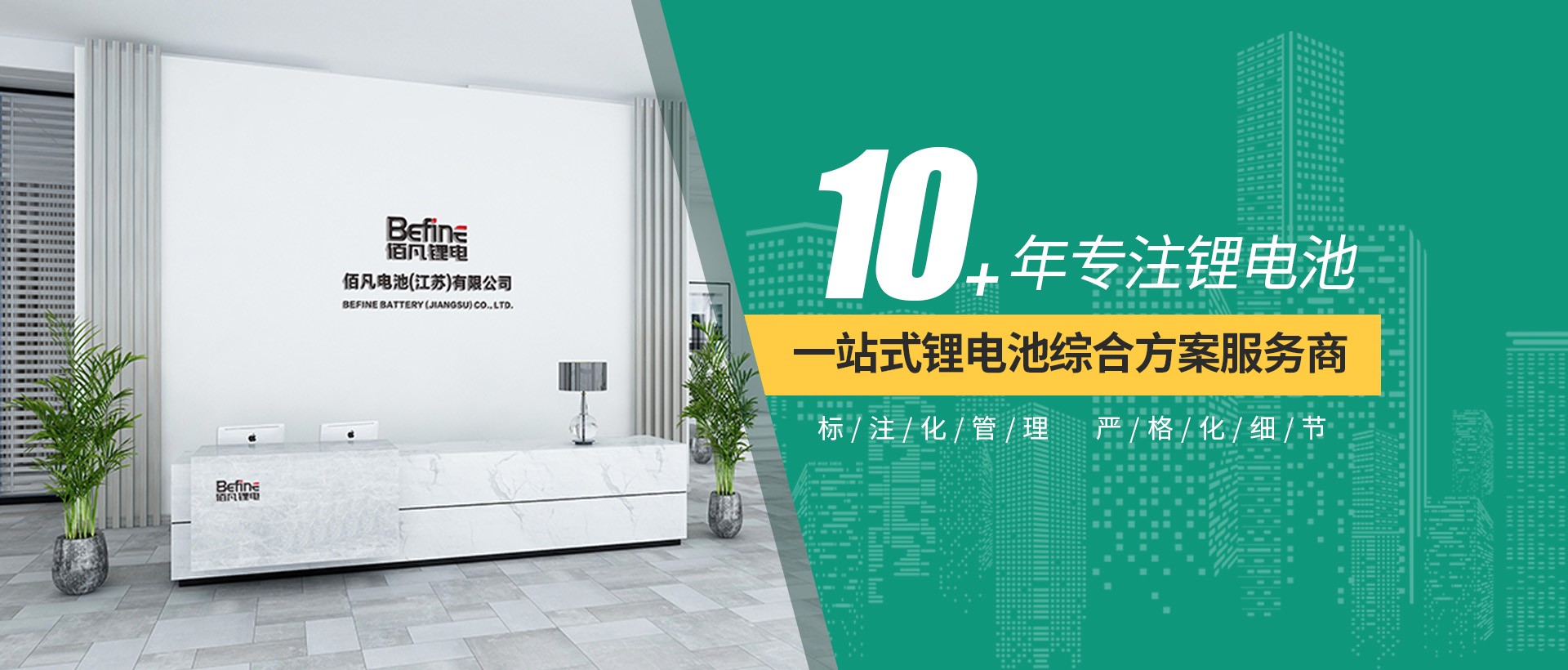 佰凡電池(江蘇)有限公司坐落于無錫國家新能源產(chǎn)業(yè)基地,為園區(qū)重點(diǎn)扶持的新能源企業(yè)。是一 家專業(yè)研發(fā)、生產(chǎn)和銷售鋰離子電池的新能源企業(yè),公司擁有完善的研發(fā),生產(chǎn),銷售,售后體系。以 提供“優(yōu)質(zhì)、安全、環(huán)?!钡匿囯姵禺a(chǎn)品為使命。憑借著持續(xù)的自主研發(fā)創(chuàng)新和設(shè)計(jì)能力,良好的成本 控制體系和優(yōu)質(zhì)的產(chǎn)品服務(wù),被許多知名的企業(yè)所認(rèn)可并發(fā)展為戰(zhàn)略合作伴。 佰凡電池(江蘇)有限公司自成立以來,在研發(fā)、生產(chǎn)、品質(zhì)、銷售等方面吸收國際上先進(jìn)的管理經(jīng) 驗(yàn),嚴(yán)格貫徹執(zhí)行ISO9001體系標(biāo)準(zhǔn),制造車間配備先進(jìn)的生產(chǎn)設(shè)備和一流的檢測儀器,嚴(yán)格控制每一 步制作環(huán)節(jié),通過工藝上不斷的優(yōu)化和完善,確保為客戶提供一流品質(zhì)產(chǎn)品。 佰凡電池(江蘇)有限公司先后通過CE,ISO9001等相關(guān)認(rèn)證,并擁有多款UN38.3航空運(yùn)輸報(bào)告,公司 自主開發(fā)有多款鋰電池外殼模具,產(chǎn)品專注于機(jī)器人,AGV,軍工,醫(yī)療,通信,精密儀器,鋰電池 UPS等高新領(lǐng)域!